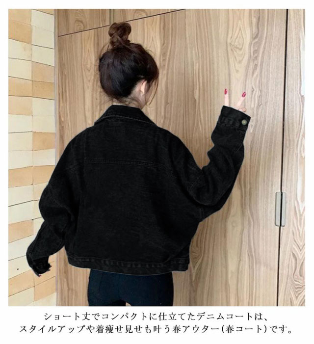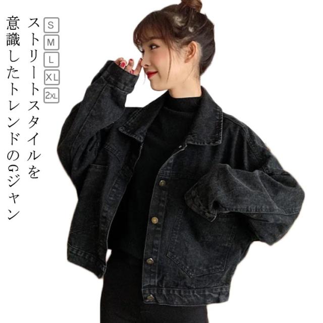 デニムジャケット レディース 大きめ デニム ジャケット 春秋 Gジャン レディース ジージャン ショート丈 カジュアル 秋ジャケット ビッグシルエット オーバーサイズ 黒 ブラック アウター ドロップショルダー 抜き襟 羽織り