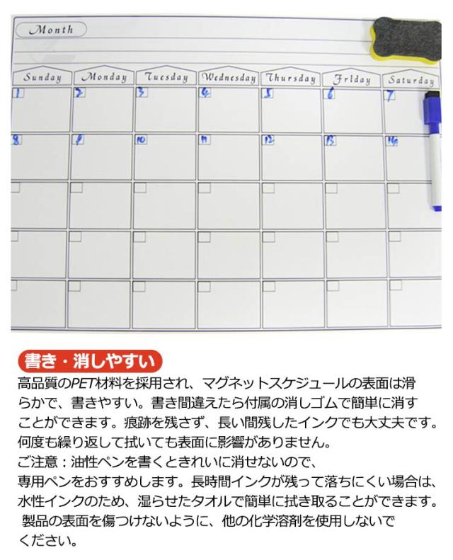 ホワイトボード カレンダー メモボード A3サイズ 週間予定表 月間予定表 冷蔵庫 付箋 メモ マグネット 磁石 貼り付け タイプ 会社 事務所 社員 家族 予定 共有 使いやすい 見やすい 綺麗に消せる エコ 実用的 【送料無料】