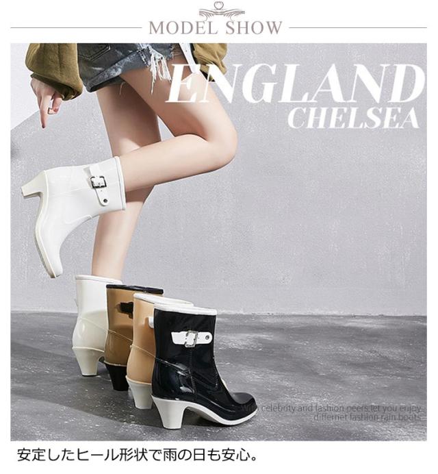 レインブーツ ショートブーツ レディース レインシューズ ショート丈 6cmヒール 雨靴 長靴 ショートブーツ 雨晴れ兼用 完全防水 軽量 滑りにくい 痛くない 歩きやすい 履きやすい おしゃれ かわいい シンプル 美脚 サイドベルト 通勤 梅雨 雨の日 雪道 雪用 23-24.5cm