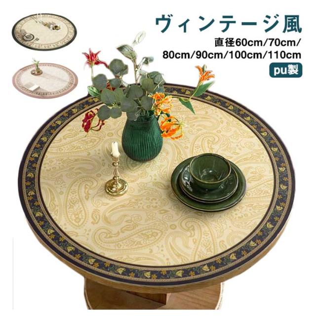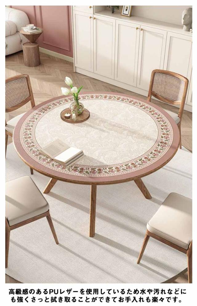 テーブルマット 円形 PU レザー調 直径100cm/110cm 撥水 耐熱 花柄 北欧 おしゃれ テーブルクロス 丸形 ダイニングテーブルマット テーブルカバー 防水 滑り止め 汚れ防止 傷防止 キズ防止 ヴィンテージ風 食卓 デスクマット レトロ風