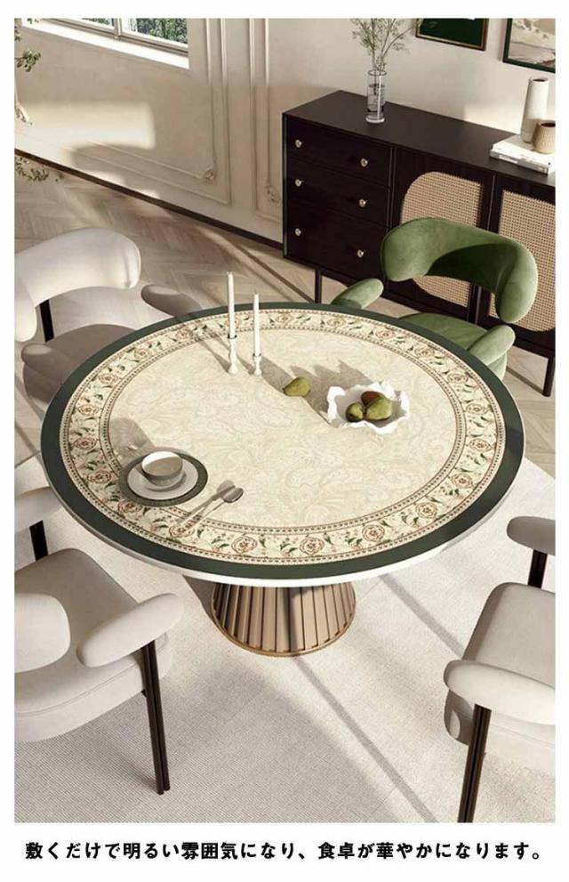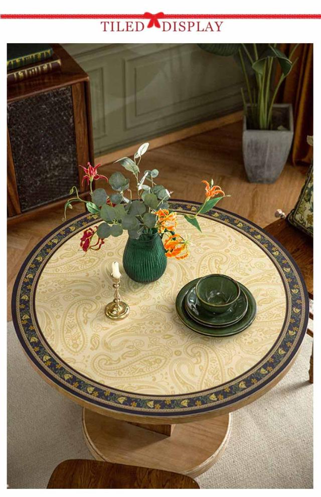 | 【ヴィンテージ風】【直径60cm/70cm/80cm/90cm/100cm/110cm】【pu製】 敷くだけで明るい雰囲気になり、食卓が華やかになります。 防水加工なので、ほとんどの水性および油性の液体をはじきます。 テーブルを傷や汚れから守れて快適生活、お子様がいる家庭は、食べこぼしや汁物こぼれも安心!円形のダイニングテーブル、コーヒーテーブル、デスク、机などに適しています。 高級感のあるPUレザーを使用しているため水や汚れなどにも強くさっと拭き取ることができてお手入れも楽々です。 製品の厚さは約2mmです。テーブルクロス表面PVCレザー素材製は、最高の耐熱は摂氏80度に達する、油汚れ、あらゆる種類の飲料、水汚れを防ぎます。 花柄ためどんなテーブルとも相性が抜群で、ご家族と一緒気軽にくつろげます。オフィステーブル、学生テーブル、ダイニングテーブル、ティーシートに適しています。 普段のお手入れは濡れた布で簡単な拭き取りで十分です | |