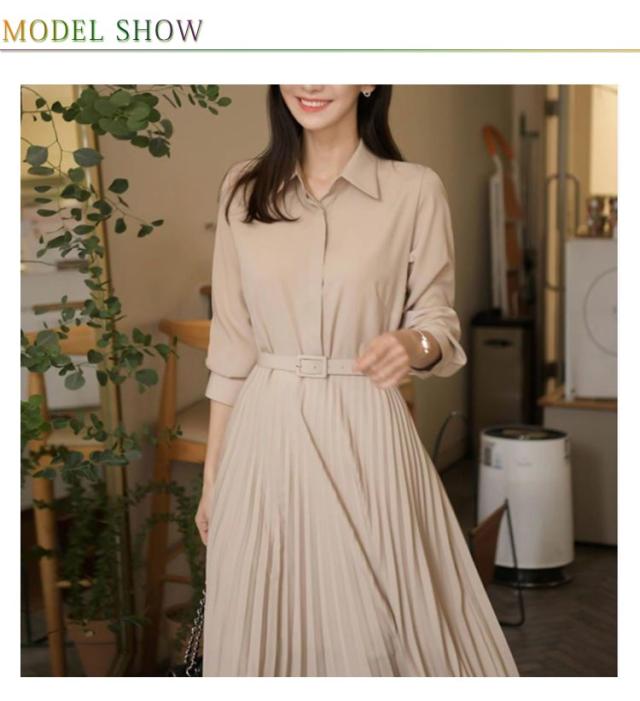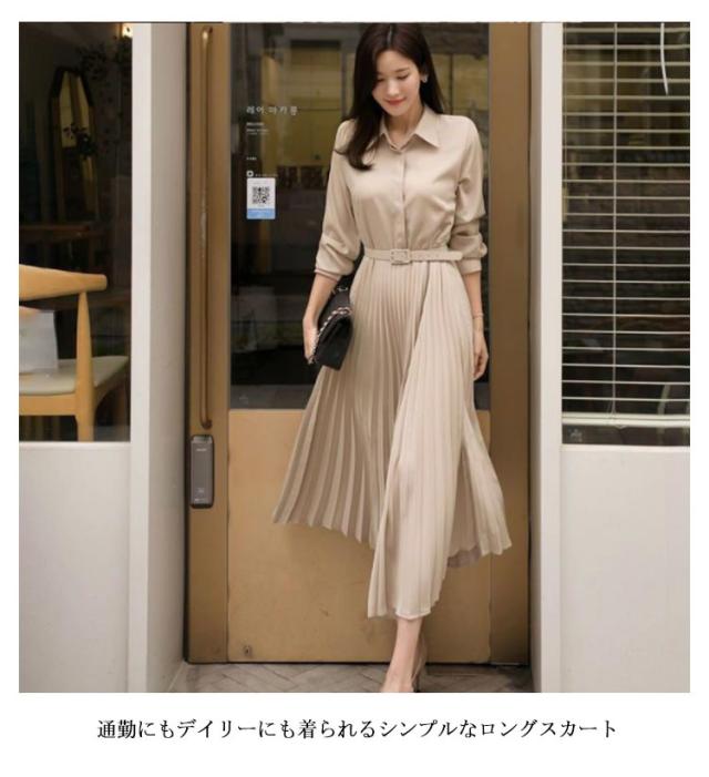 | 新作長袖シャツワンピース 通勤にもデイリーにも着られるシンプルなロングスカート ウエストにはベルトが付いているのでスタイルアップ効果も期待できます。 スカートの裾はA字型で滑らかなラインです 一枚でも重ね着にも適しています | |
