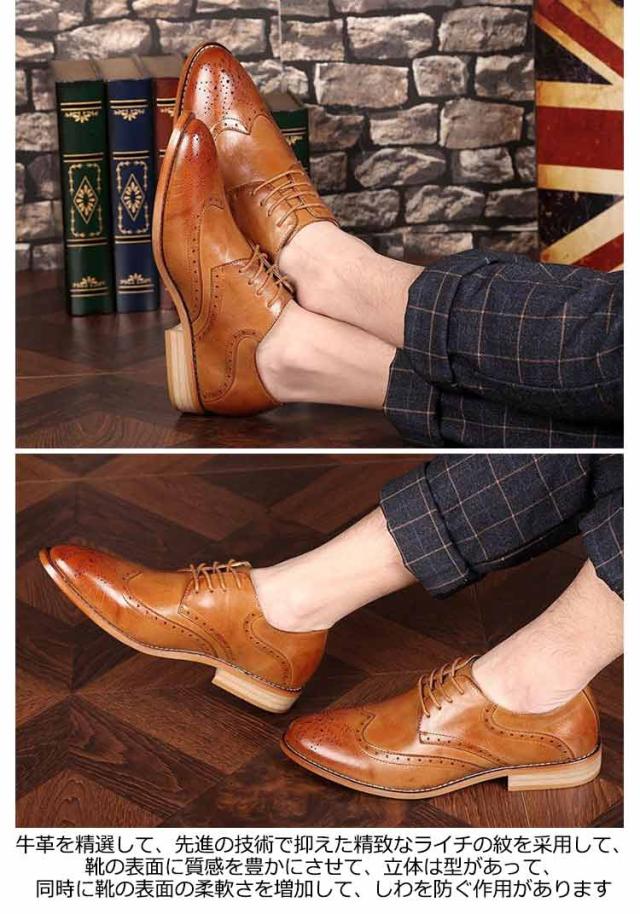 シークレットシューズ 本革 メンズ 革靴 ビジネスシューズ 結婚式 カジュアルシューズ メンズ レースアップ ウイングチップ シューズ フォーマル シューズ 牛革 大きいサイズ 入社式 紳士靴 卒業式 ビジネス 紳士用 送料無料