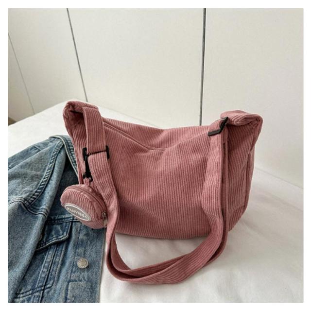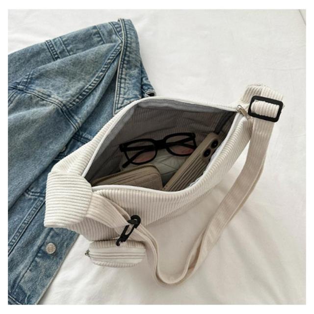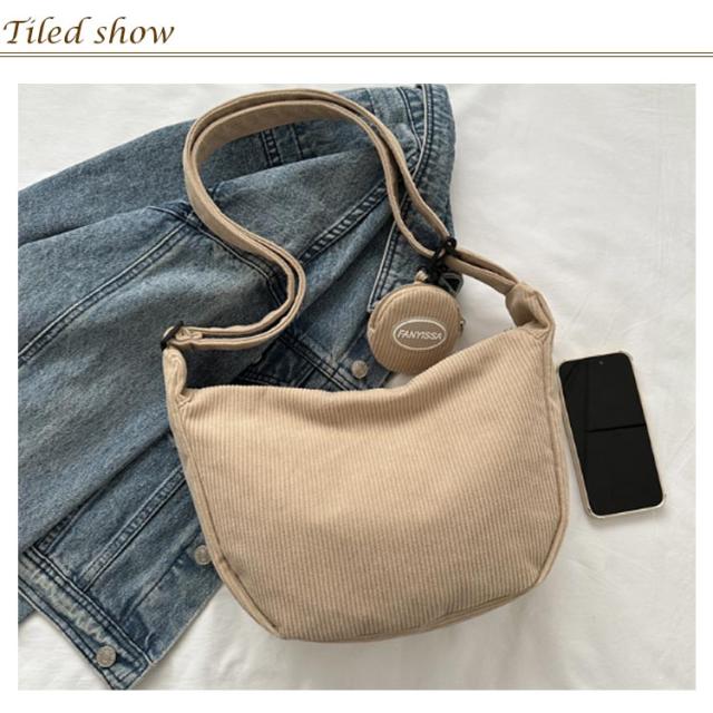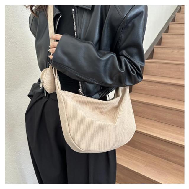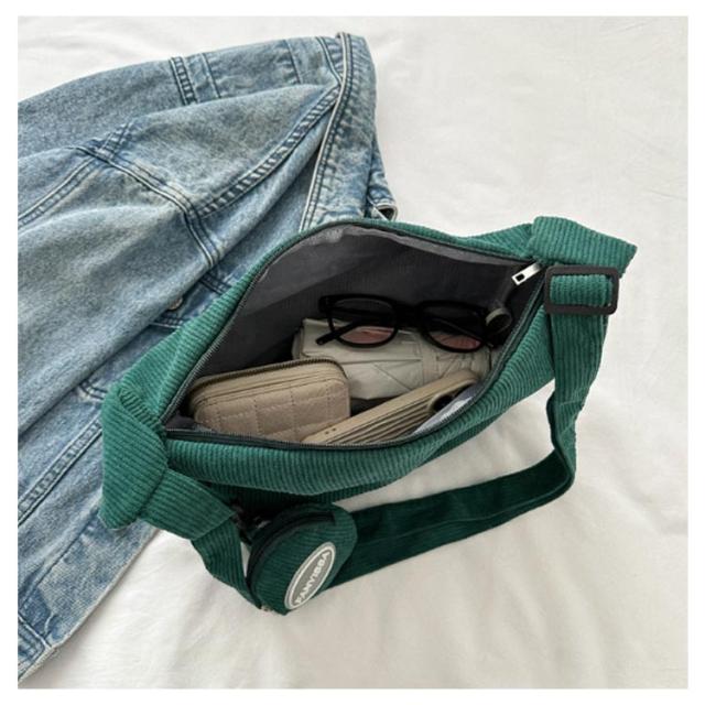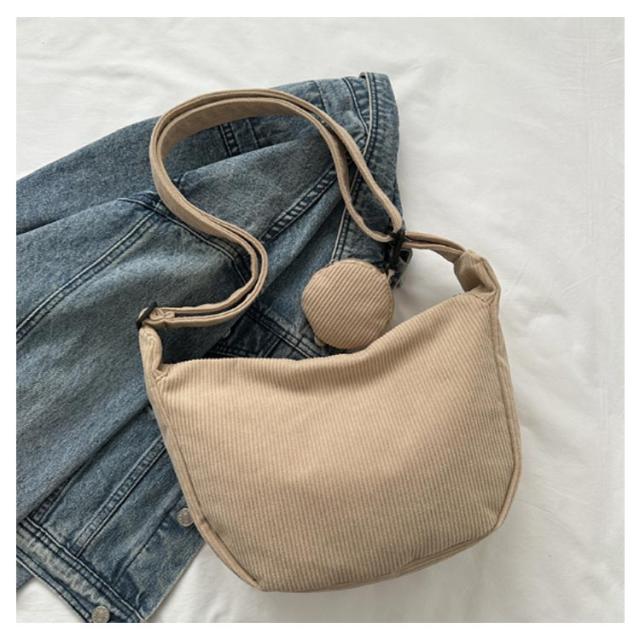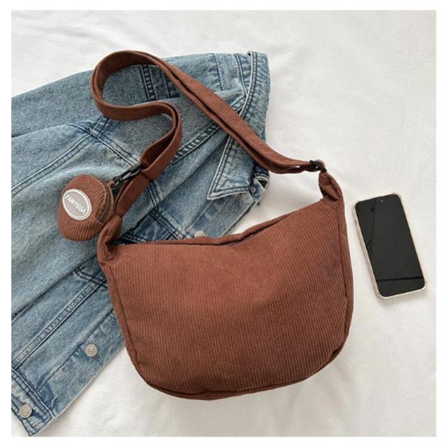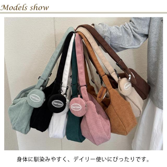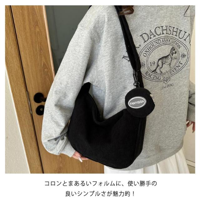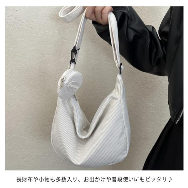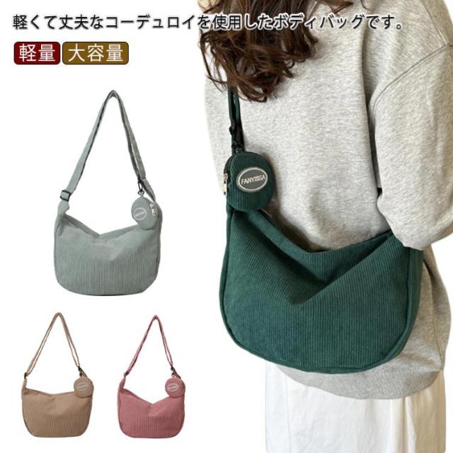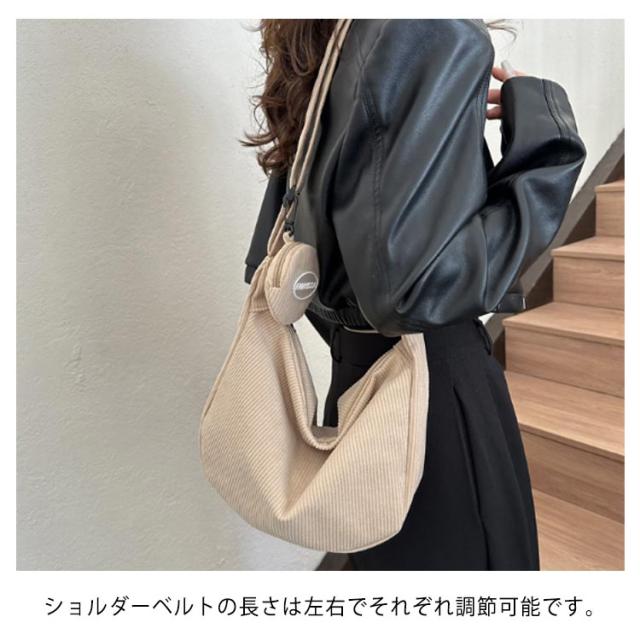 | 軽くて丈夫なコーデュロイを使用したボディバッグです。 コロンとまあるいフォルムに、使い勝手の良いシンプルさが魅力的! 長財布や小物も多数入り、お出かけや普段使いにもピッタリ♪ 小物入れに便利なミニポーチ付き、メイン収納はマチ付きでたくさん入ります◎ ショルダーベルトの長さは左右でそれぞれ調節可能です。 身体に馴染みやすく、デイリー使いにぴったりです。 | |
