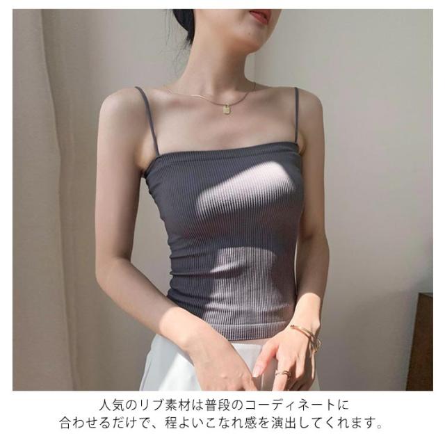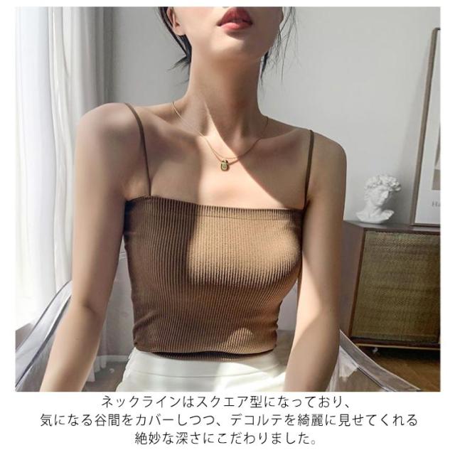 | リブ編みでリラクシーな着心地が味わえるカップ付のキャミソール。 よりリラクシーな着け心地が特徴のノンワイヤータイプ。楽なのに綺麗なバストを叶える機能が満載。 人気のリブ素材は普段のコーディネートに合わせるだけで、程よいこなれ感を演出してくれます。 ネックラインはスクエア型になっており、気になる谷間をカバーしつつ、デコルテを綺麗に見せてくれる絶妙な深さにこだわりました。 インナーとしてご活用いただいたり、暑い季節にはトップスとしてご活用いただくのもオススメです◎ 【こんな時におすすめです】 ・普段のインナーとして ・コーディネートに取り入れて ・おうち時間でのリラックスウェアとして | |