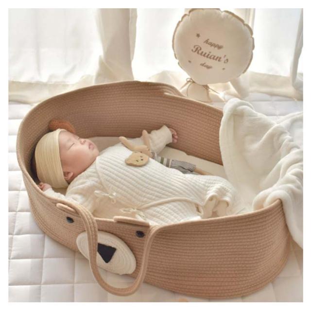 クーファン かご ベビーバスケット ベビーキャリー ベビーベッド 籠 バスケット 赤ちゃん 持ち運び コンパクト ベビー クーハン 添い寝 お昼寝 ロープ編み 折りたたみ ベビー用 赤ちゃん用 シンプル 春 北欧風 ギフト ベビー用品