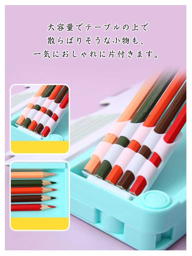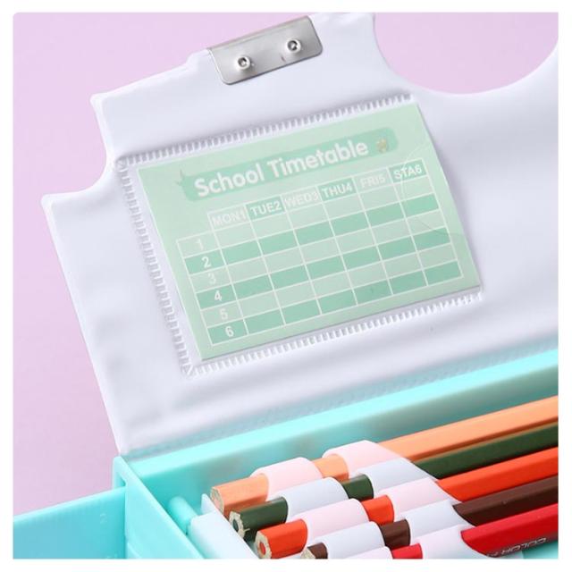 | 機能性はバッチリなので大活躍間違いなし。ペンケース。 大容量でテーブルの上で散らばりそうな小物も、一気におしゃれに片付きます。 時間割表+消しゴムケース+ハサミ付き+鉛筆削り+鉛筆ホルダー(鉛筆5本を収納)+テープ収納! 文房具が一目瞭然で、分かりやすく使いやすい! | |