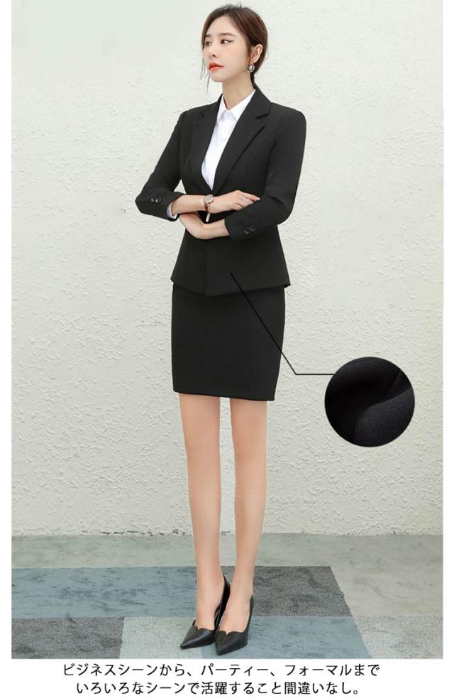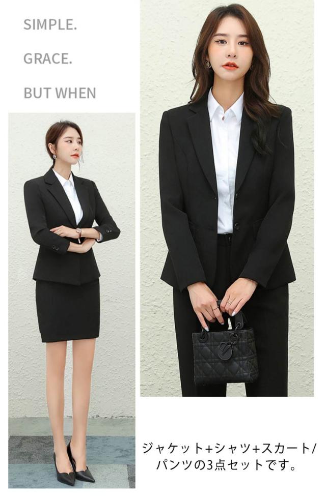 | 上品でスタイリッシュなスーツの3点セット! ジャケット+シャツ+スカート/パンツの3点セットです。 細魅せ効果絶大、スリムラインが美シルエットをメイク! ビジネスシーンから、パーティー、フォーマルまでいろいろなシーンで活躍すること間違いなし。 | |