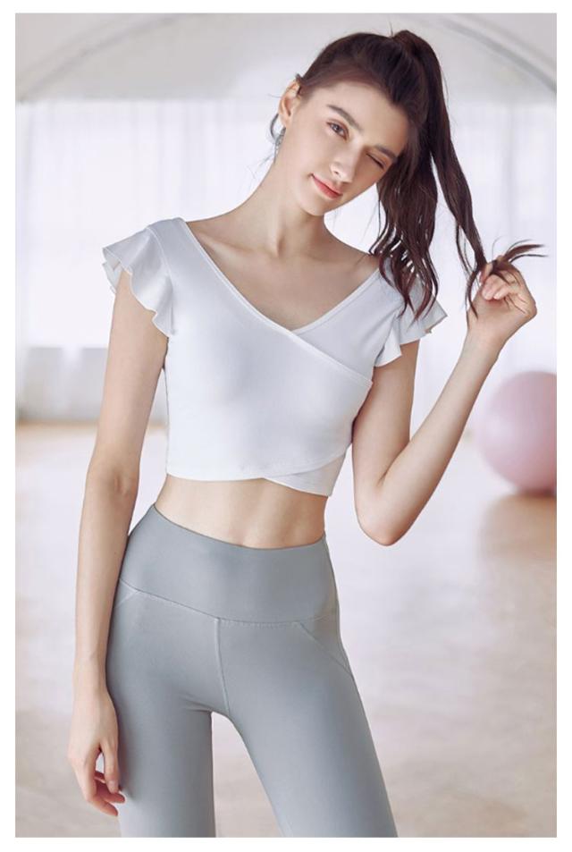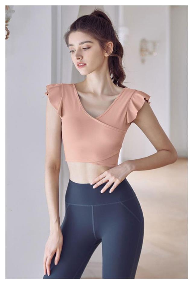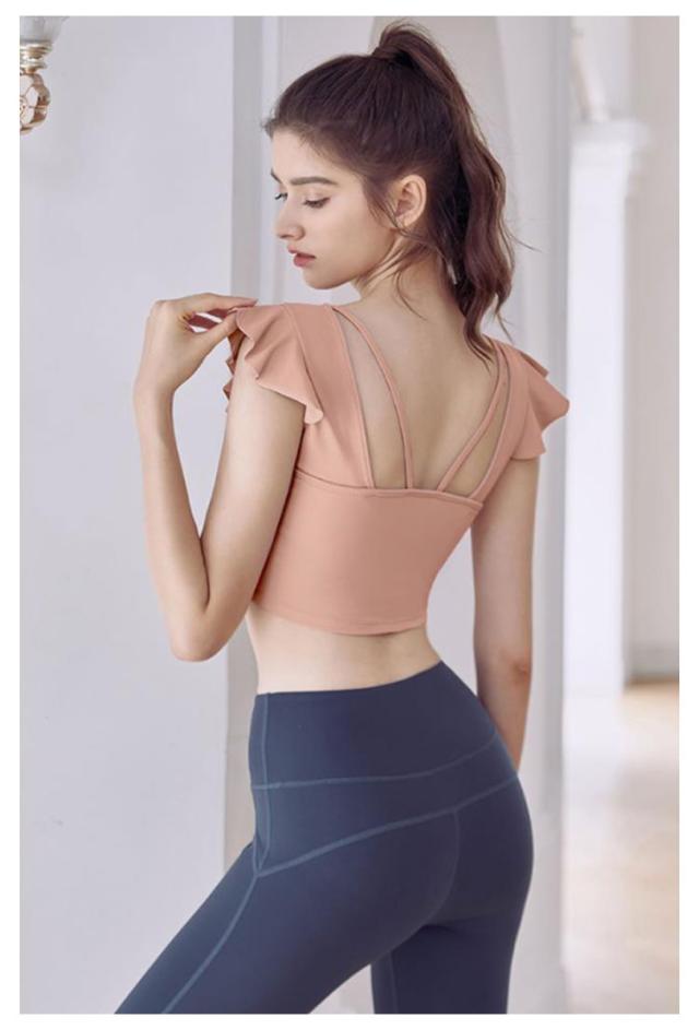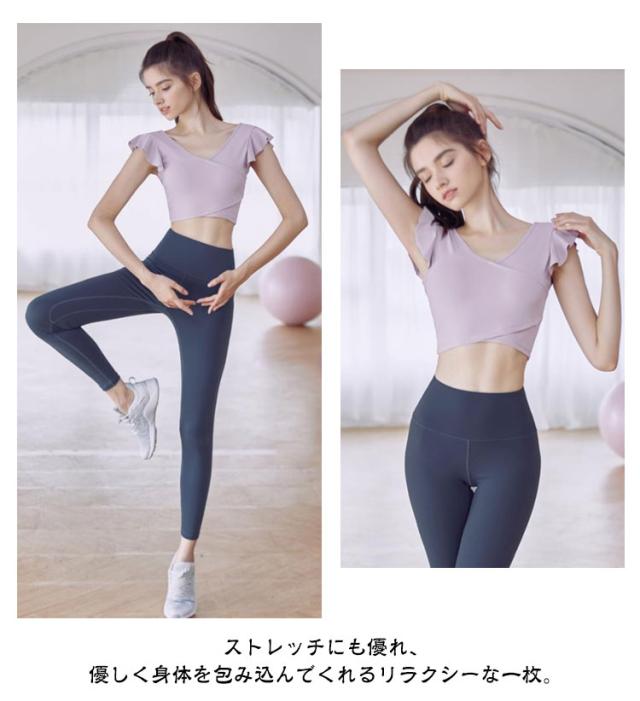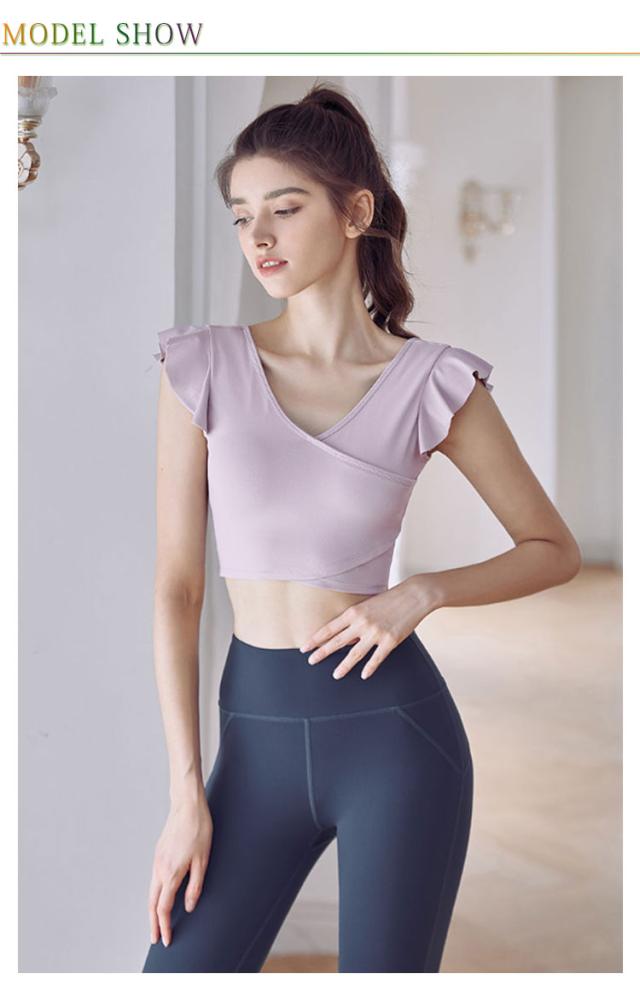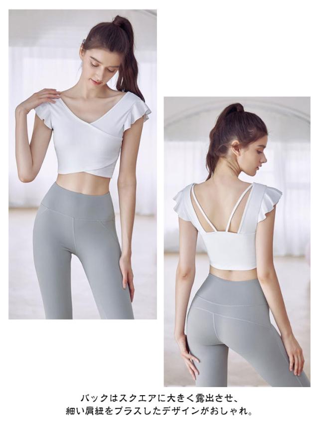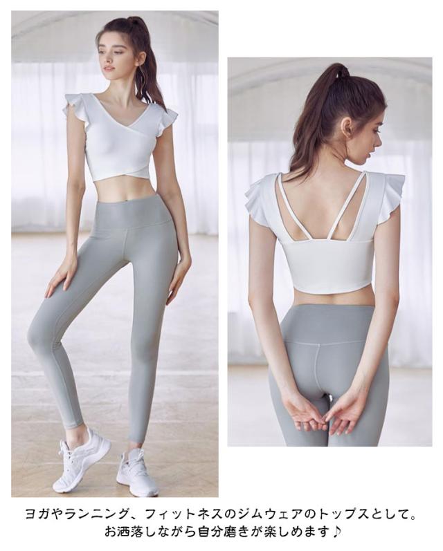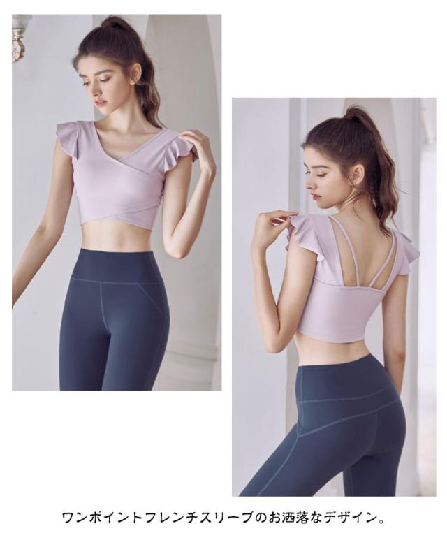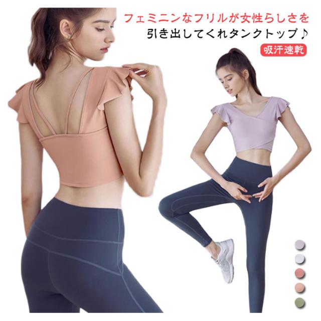 タンクトップ ヨガウェア カップ付き 揺れない トップス ショート丈 フレンチスリーブ フリル バレエ 吸汗速乾 ランニング ピラティス ホットヨガ フィットネス ダンス衣装 おしゃれ 可愛い 送料無料