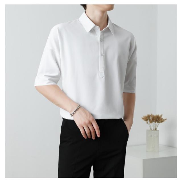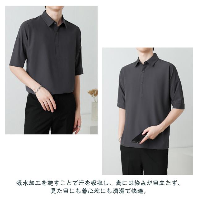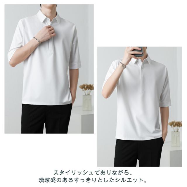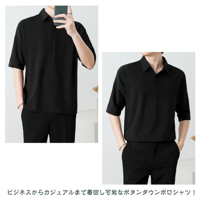 ポロシャツ メンズ 黒 白 半袖 5分袖 五分袖 ハーフスリーブ ポロシャツ ボタンダウン レギュラーカラー スリム フィット 薄手 冷感 吸水速乾 無地 シンプル おしゃれ ビジネス ビズポロ ボタンダウンポロシャツ 送料無料