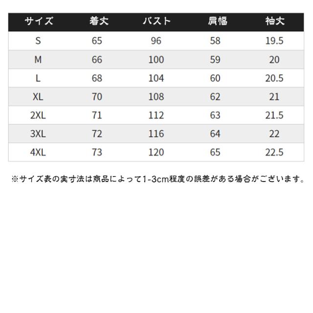 | サイズ | S M L XL 2XL 3XL 4XL |