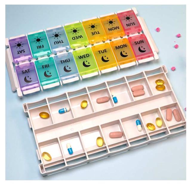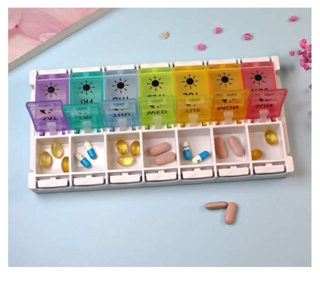 | ピルケース 一週間 一日2回用 【健康管理を簡単にする】錠剤について混乱することはもうありません!この習慣薬箱は一週間によって、曜日別されました。さらに朝、晩分割された毎日のコンパートメントを備えた完璧な処方箋と薬のリマインダーを持っています。これを持って、投薬と健康管理がより簡単になります。 【開け閉め簡単】蓋の開け閉めやすく、ワンタッチプッシュで開けますので、お力の弱い年寄りの方でも使いやすいです。 【スタイリッシュでかっこいいうえに使いやすい】デザインがとってもおしゃれ!目で楽しみながら色でも曜日認識ができます。また虹のような色を搭載して、色彩もマットな色合いで無く透明感があるので、一目で中の錠剤確認もできます。 【持ち轉び便利】ケースは曜日ごとに取り出して持ち歩くこともできます。外出の日や旅行の時なども、必要な分のケースを取り出して携帯するなら、外出時の薬の飲み忘れを防止することができます。 【携帯便利】コンパクト収納ケースなので、室内用としても重宝できるだけではなく、通勤通学・出張出勤・出国旅行等にも携帯便利です。 | |