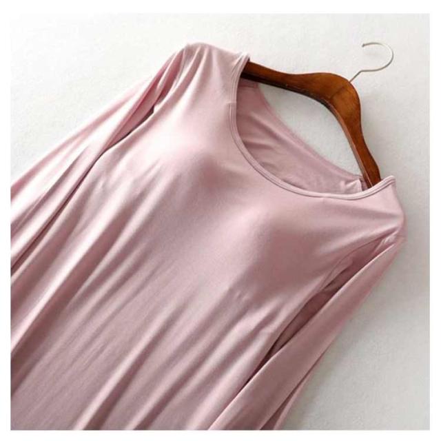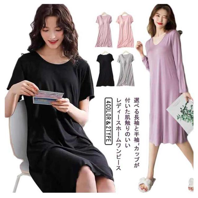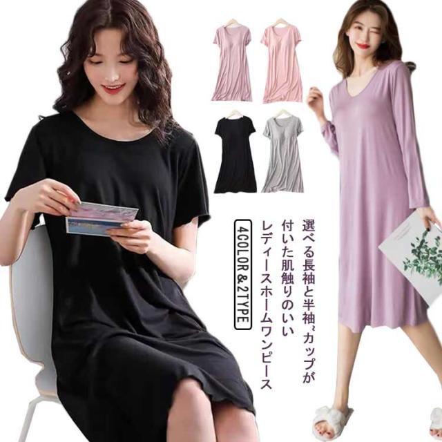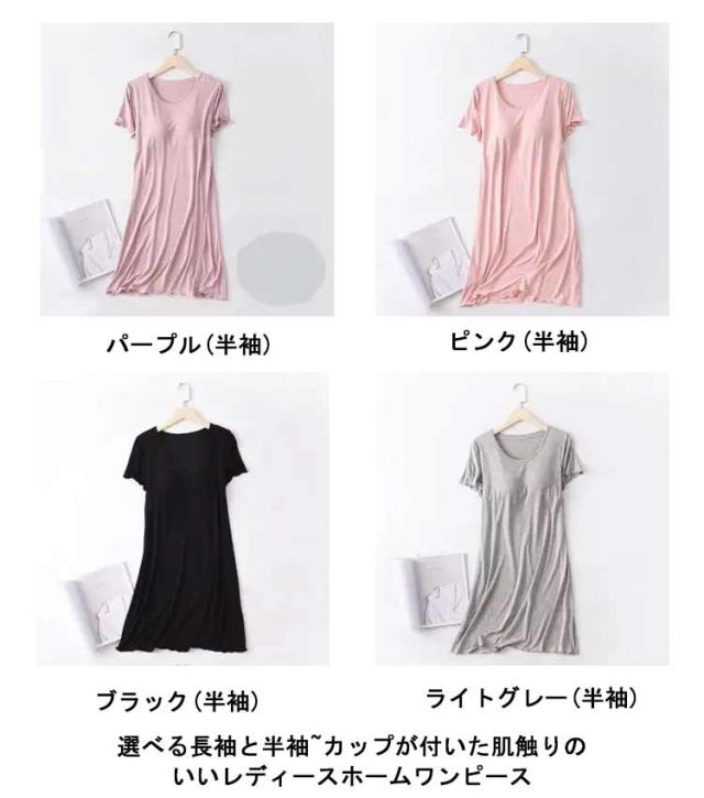 カップ付き ワンピース 半袖 長袖インナー レディース パジャマ ロングTシャツ ルームウェア ホームウェア ブラT 寝巻き 寝間着 カットソー 部屋着 ナイトウェア 肌着パッド付き 速乾 ストレッチ 伸縮性 通気性 締め付けない リラックス