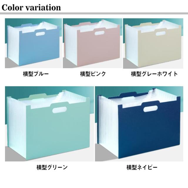 | 収納場所に合わせて伸縮可能のアコーディオン式ファイルケース。 表面材質は耐用厚さ増しのpp材料使用し、無毒で、安全で、破れにくい、防水、耐久性を持って長く使えます。 12仕切り13ポケットの大容量。最大390mmまで伸びる。 書類の分類整理に大活躍。2000枚A4ペーパ収納可能。 分類に便利なアコーディオン型、ファイルによってポケットは伸縮出来ます。 ファイル検索便利、整理保存しやすい自立型。 横型と縦型の2種類展開、オフィスや事務室の書類整理・整頓・保存はもちろん、学生(小学生・中学生・高校生)の勉強資料の整理保存時も重宝する間違いなし。 | |