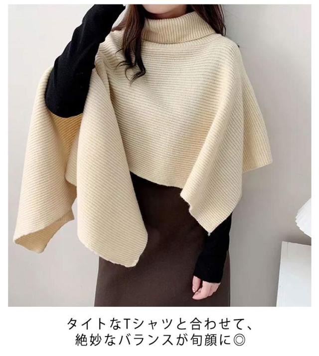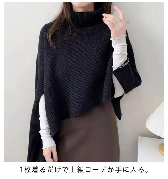 レディース ニットトップス セーター タートルネック ニットベスト 秋冬 プルオーバー チョッキ ニットセーター ポンチョ風 ケープ ゆったり 体型カバー 大きいサイズ 防寒 オシャレ 通勤 オフィス