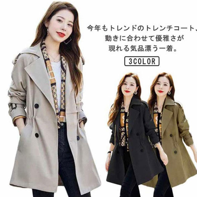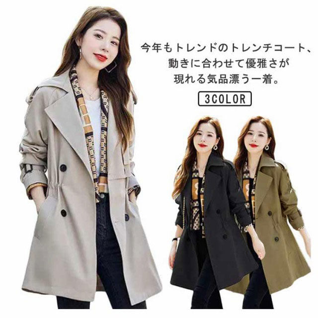 春物 レディース トレンチコート スプリングコート ミドル丈 春コート 春服 秋服 ガウンコート ビジネスコート アウター 大きいサイズ