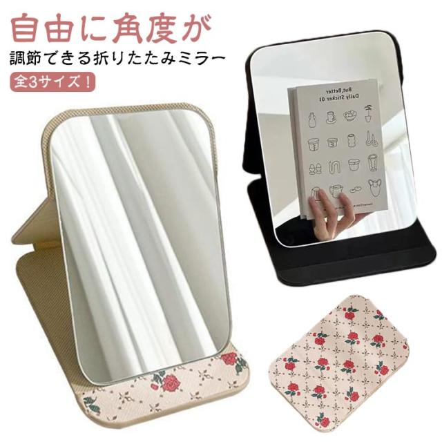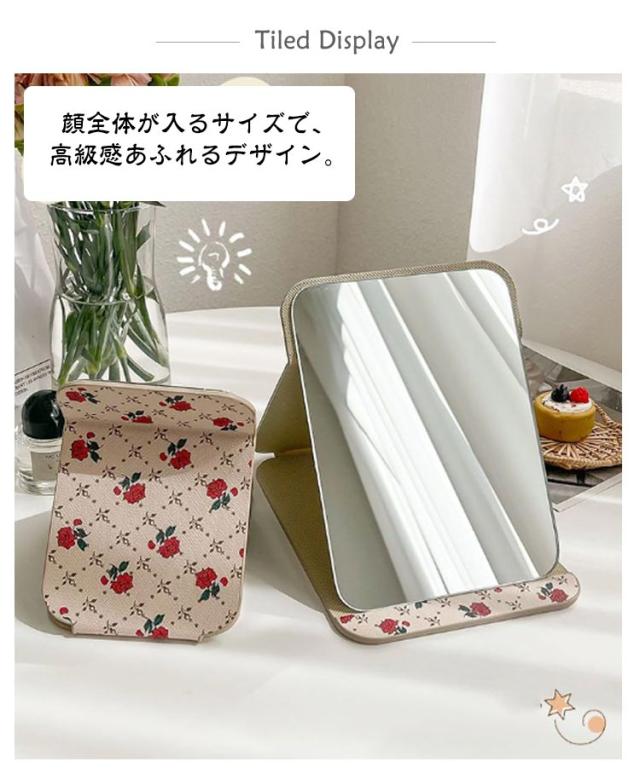 卓上ミラー 折りたたみ かわいい おしゃれ 化粧鏡 PUレザー おしゃれ 化粧ミラー テーブルミラー 見やすい 大きい スタンドミラー メイク ヘアメイク 鏡 かがみ 角度調整 置き鏡 使いやすい 割れにくい コンパクト 卓上鏡 プレゼント ギフト 送料無料