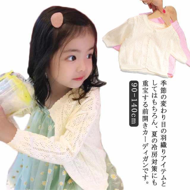 送料無料 子供服 女の子 カーディガン 長袖 トップス キッズ アウター 前開き 羽織り 上着 薄手 通気 可愛い ガールズ 幼児 女児服 韓国 幼稚園 保育園 入園 冷房対策 綿 春 夏 秋 90 100 110 120 130 140
