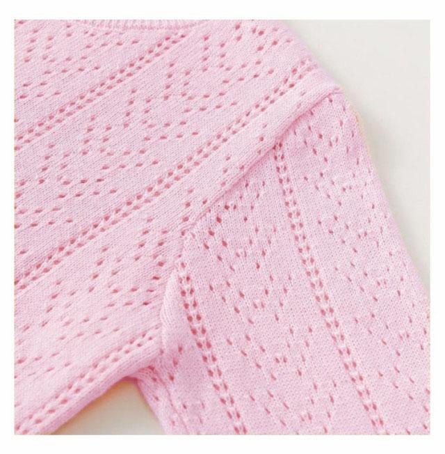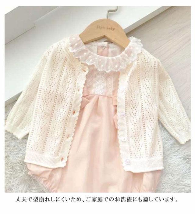 | 季節の変わり目の羽織りアイテムとしてはもちろん、夏の冷房対策にも重宝する前開きカーディガンです。女の子のお気に入ったカラーやベビーからキッズまで着用できる幅広いサイズをご用意して、姉妹や友達お揃いにもおすすめ。 薄手で肌に優しい綿100%を使用した長袖カーディガンが、吸汗・通気性にも優れ、サラッとした着心地です。伸縮性があって動きやすいのも嬉しいポイントです。丈夫で型崩れしにくいため、ご家庭でのお洗濯にも適しています。 シンプルなカーディガンに透かし彫りデザインを施して女の子らしい優しい雰囲気を演出します。フロントは前開きなので着脱や重ね着にもしやすいです。ボタンを開ければ、便利な上着になっています。寒い時期にはアウターのインナートップスとしでも着用できます。 ほどよいフィット感&すっきりシルエットを実現します。スカートにもワンピースにもどんなお洋服にもコーデしやすくで着回し力抜群の女の子用の上着です。 無地だからコーデしやすく、春秋のちょっとした肌寒い季節や夏場のエアコン等場合に冷え対策グッズとして使えるカーディガンです。シンプルな着こなしに一枚プラスするだけできちんと見えるので、普段使い、幼稚園、保育園などの通園や部屋着にもオススメです。 | |