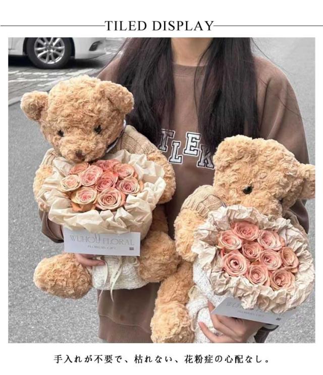 ソープフラワー 花束 誕生日プレゼント 熊 造花 ソープフラワーギフト アレンジメント 花 花束 ブーケ クマ くま バラ クリスマスギフト 発表会 誕生日 結婚祝い 記念日 母の日 退職祝い ギフト バレンタインデー LEDライト付き 手提げ袋付き