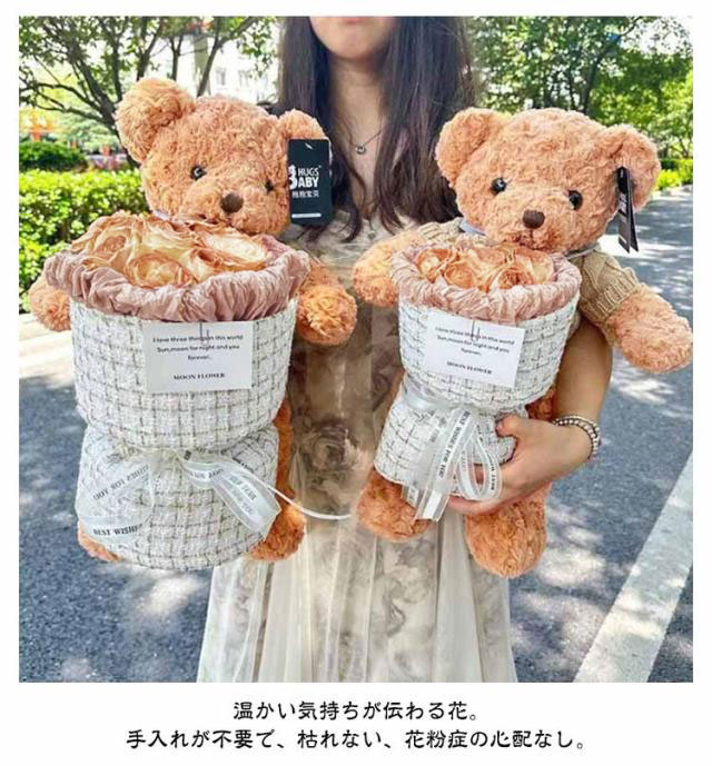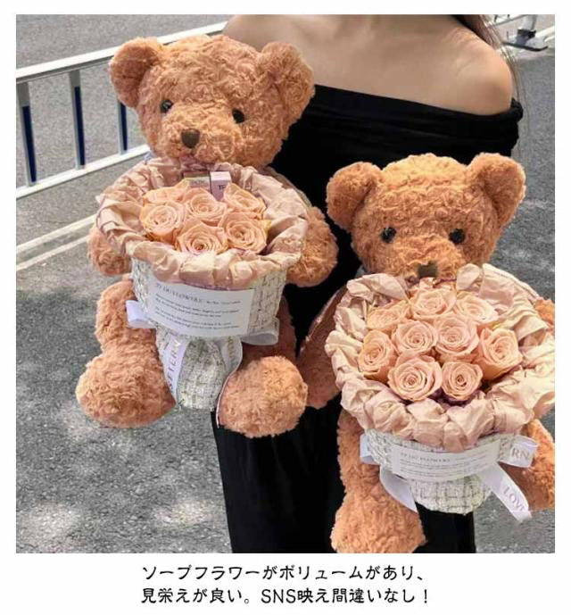 送料無料 ソープフラワー プレゼント ブーケ くま ぬいぐるみ 花束 かわいい ギフト 誕生日 クマ バラ 結婚式 卒業祝い 卒園祝い 卒業式 クマ 造花 母 お返し お祝い 退職 発表会 結婚祝い ホワイトデー 出産祝い 送別会