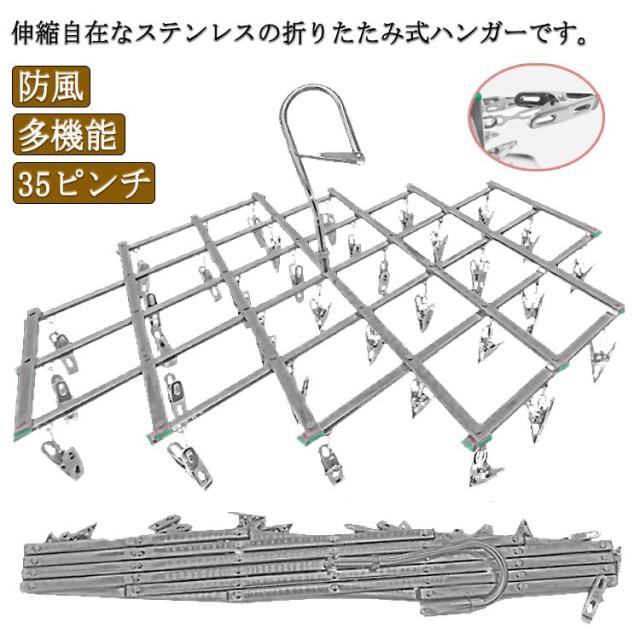 洗濯ハンガー ピンチハンガー ステンレス 折りたたみ コンパクト 洗濯用 ハンガー 物干しハンガー 35ピンチ 洗濯物干し 防風 靴下 下着 タオル ベビー服 多機能 家庭用 送料無料