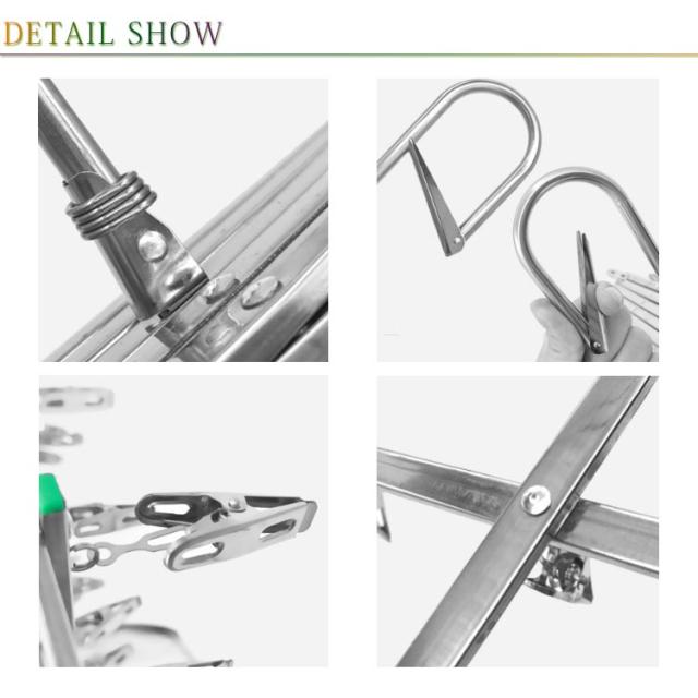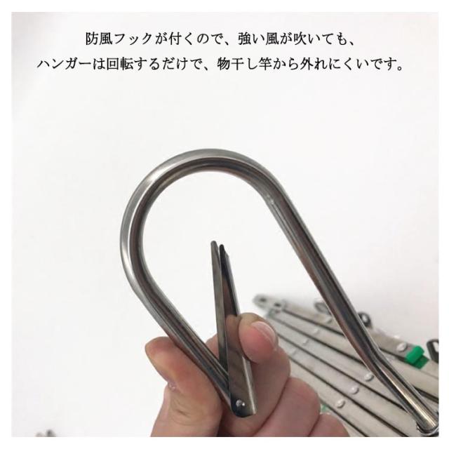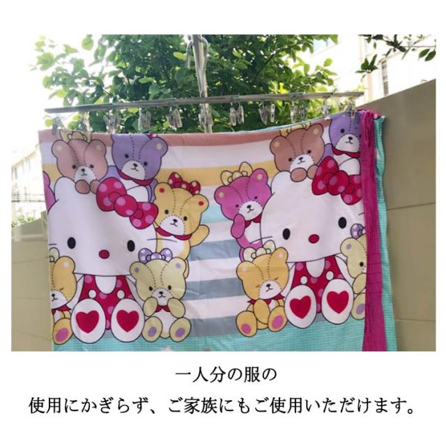 | 伸縮自在なステンレスの折りたたみ式ハンガーです。 幅広く伸縮するので、お好きな形状でご利用できます。 防風フックが付くので、強い風が吹いても、ハンガーは回転するだけで、物干し竿から外れにくいです。 ピンチの数が35個で、たくさんの洗濯物を干すことができます。 ステンレス製のピンチハンガーは、丈夫で錆に強く、劣化しにくく、長持ちします 。 コンパクトに収納できるので場所を取りません。 一人分の服の使用にかぎらず、ご家族にもご使用いただけます。 | |