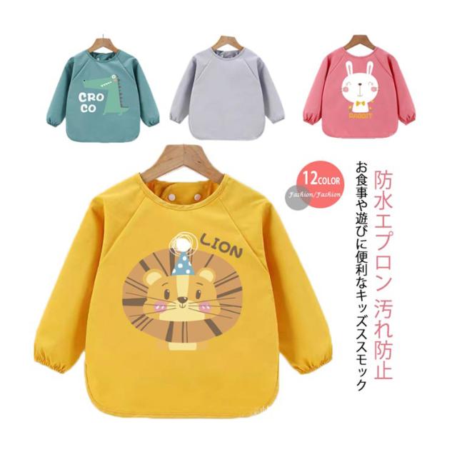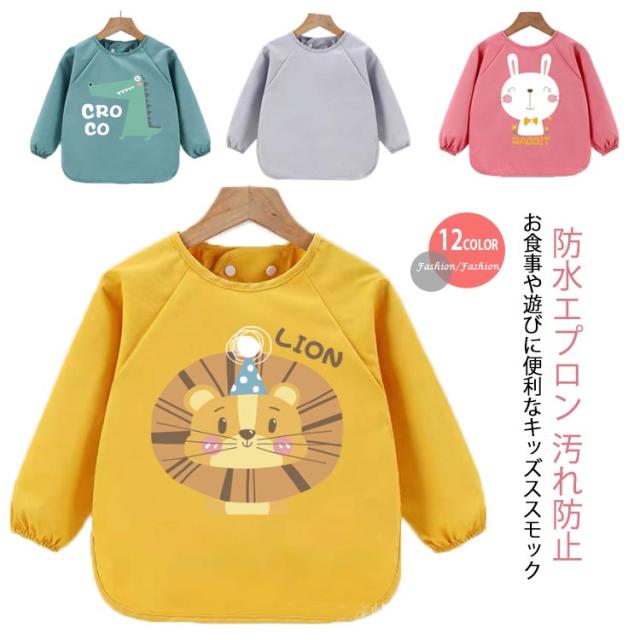 お食事エプロン 保育園 防水 幼児 ロングスモック スモック 防水エプロン 汚れ防止 長袖 可愛い キッズ ベビー 女の子 男の子 長袖スモック 子供服 ベビー 離乳食エプロン 子ども 食べこぼし防止 ベビーエプロン プルオーバー お絵描き 送料無料