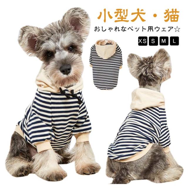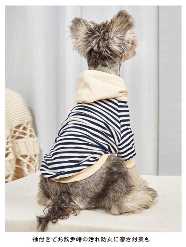 犬の服 ドッグウェア 猫服 パーカー フード付き 小型犬 猫 春 秋冬 防寒 ペット服 犬服 犬用 猫用 キャットウェア 可愛い お洒落 ボーダー 柄 着せやすい 袖あり 寒さ対策 お散歩 ワンちゃん ネコちゃん 秋服 冬服 犬 服 着脱簡単