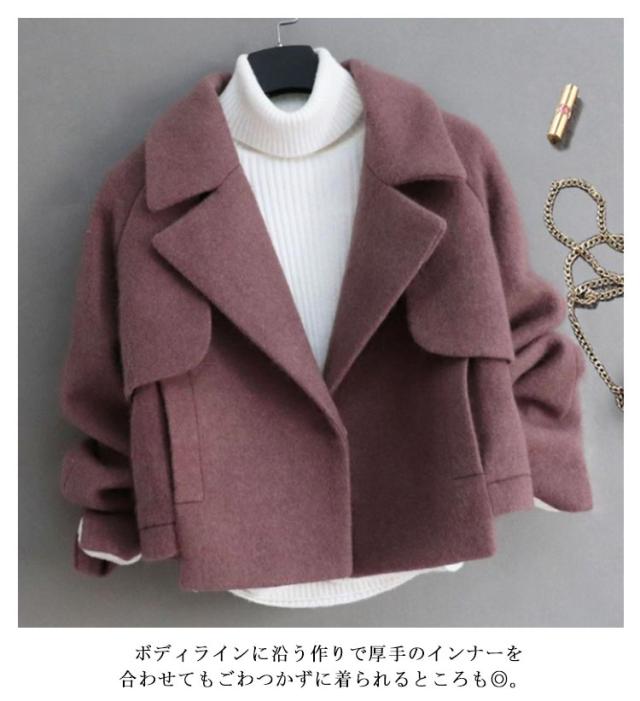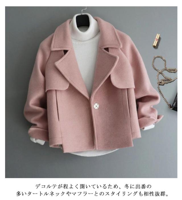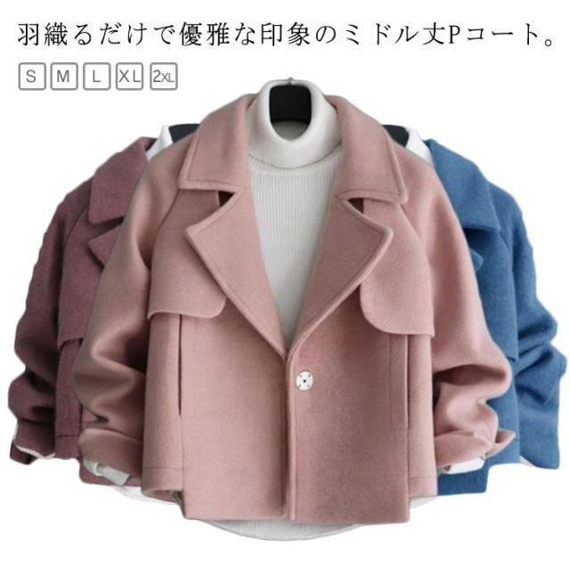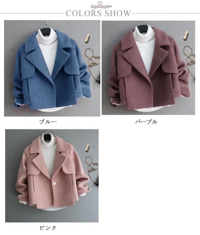 ピーコート Pコート レディース ショート丈コート 学生 中学生 高校生 アウター ショート丈 コート 秋 冬 通学 通勤 キレイめ 暖かい 防寒 軽量 パープル ブルー ピンク