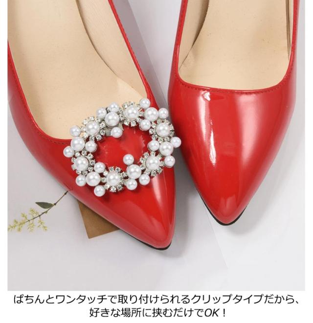 シューズクリップ パール パンプス シューズアクセサリー 2個組 結婚式 シューズ パンプス クリップ 靴 飾り キラキラ レディース 花嫁 小物 シュークリップ かわいい おしゃれ パーティー ウェディング ウェディングシューズ 上品 高級感 シューパーツ 送料無料