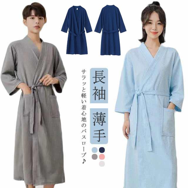 バスローブ レディース メンズ 長袖 薄手 ワッフル生地 吸水 軽量 お風呂上り 部屋着 ルームウェア ロング オールシーズン 速乾 温泉 ホテル プール 海 ギフト 誕生日 プレゼント