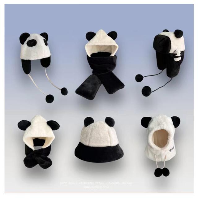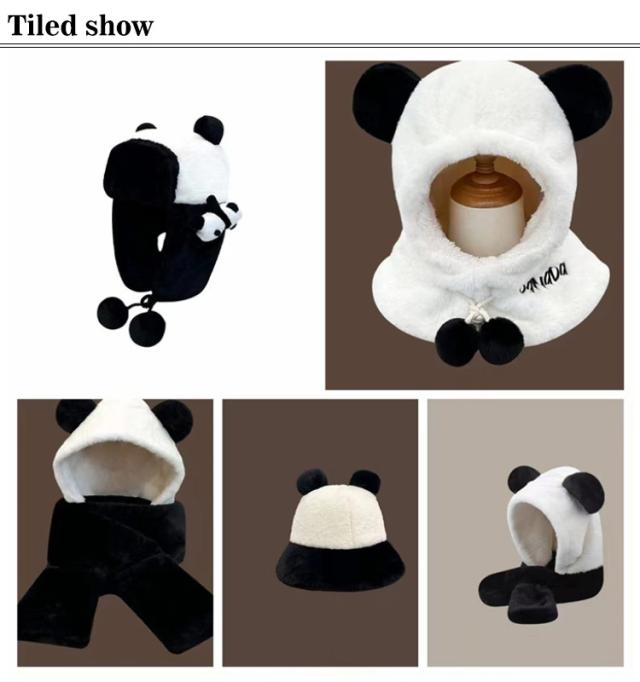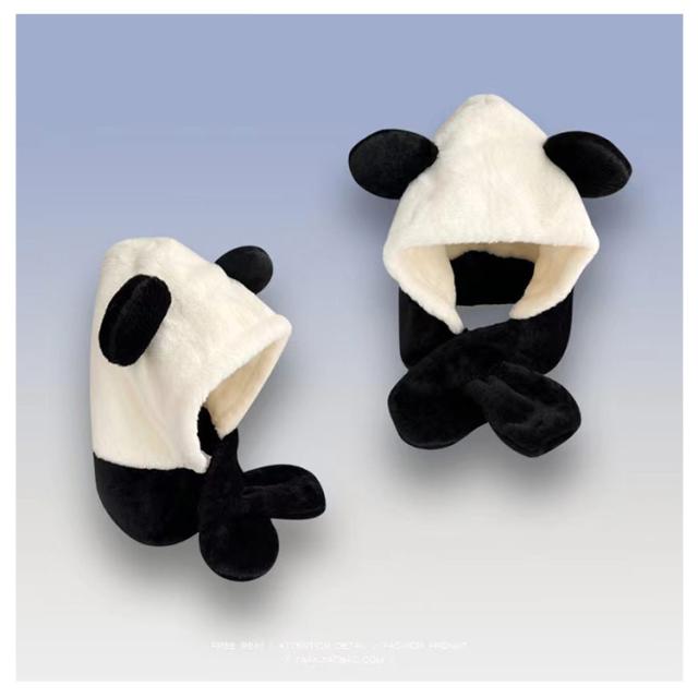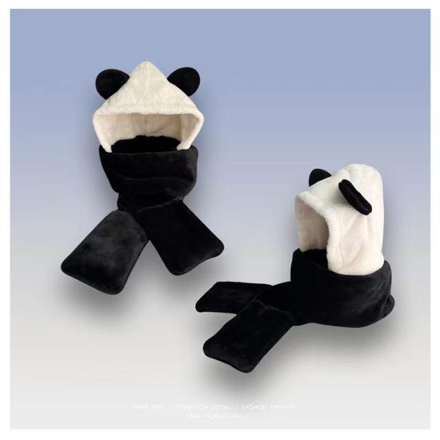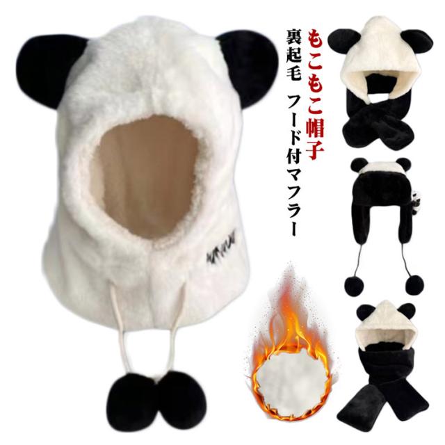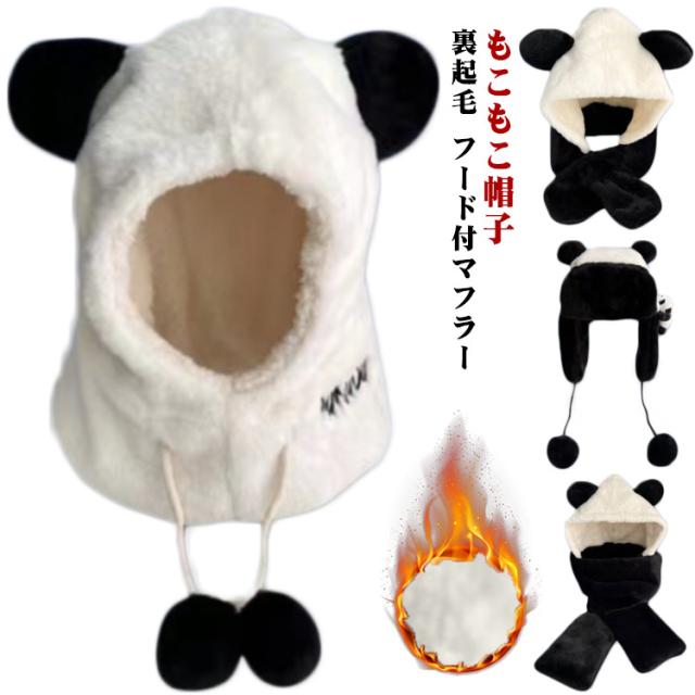 暖か ふわふわ 帽子 マフラー 一体型 裏起毛 フード付マフラー ニット帽 スカーフ 厚手 ネックウォーマー 耳付き 秋冬 クマ耳 かわいい アニマル帽子 小顔効果 もこもこ パンダ スカーフ 可愛い ファー あったか ぬくぬく 防寒 アウトドア お出かけ