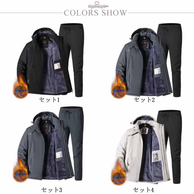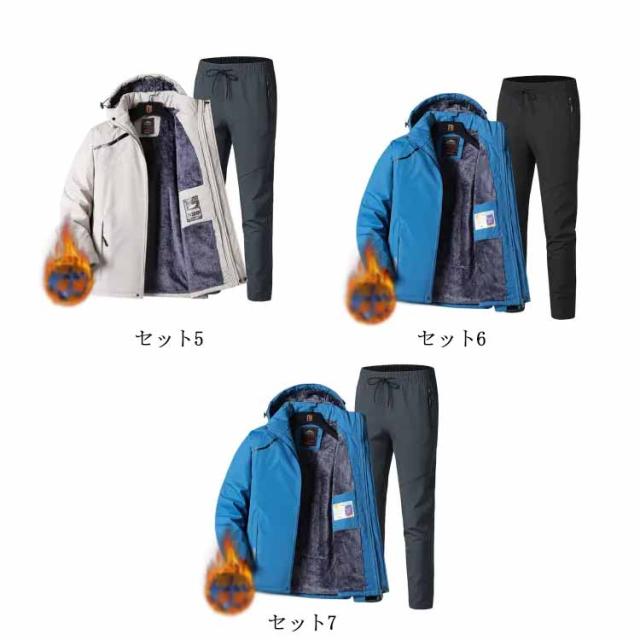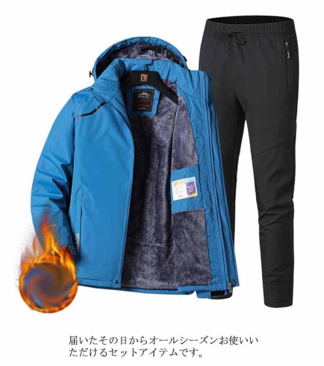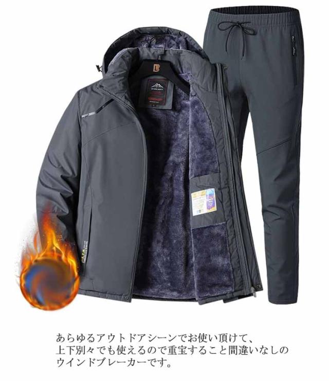 マウンテンジャケット メンズ 上下セット ウィンドブレーカー 裏起毛 厚手 登山服 アウトドアジャケット 長ズボン 2点セット 防水 防風 ハイキング 釣り 登山 バイク トレッキング 防寒着 ハイキングジャケット アウトドアウェア 春 秋 冬