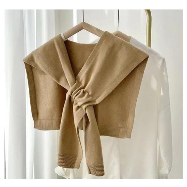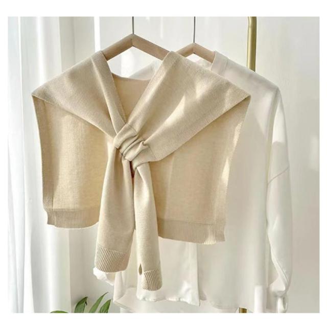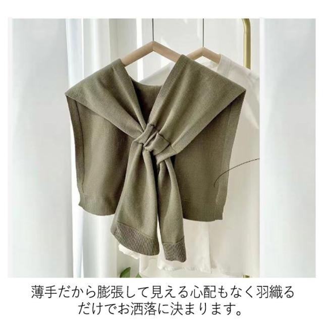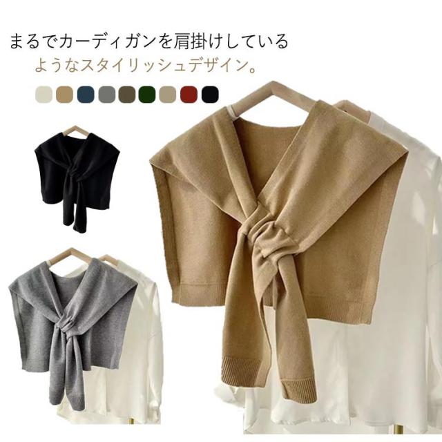 肩かけニット カーディガン風 肩掛け フェイクカーディガン ショルダーカーディガン たすき巻き 肩掛け専用ニット 薄手 ショール つけ襟 ニット 付け襟 マフラー レディース おしゃれ 無地 セーラー襟 重ね着風コーデ 春秋 送料無料
