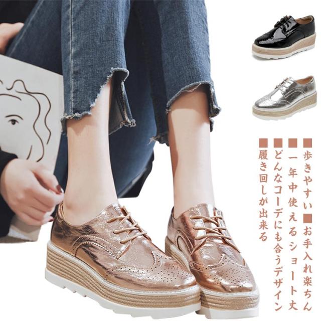 ローファー パンプス ブーティ プラットフォームシューズ 厚底スニーカー レディース ウェッジソール 編み上げ シューズ 春秋 レザー 22-24.5cm 合成皮革 丸トゥ おしゃれ 靴 学生靴 通学 通勤通学