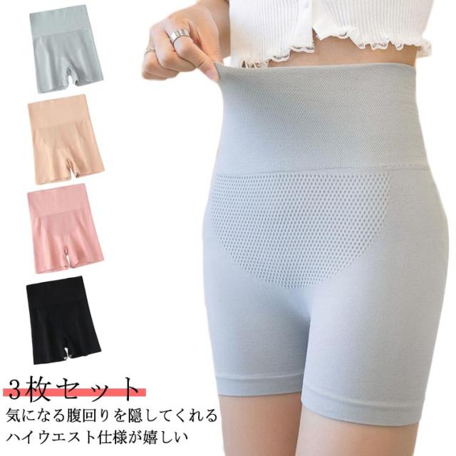 ハイウエスト ショーツ インナーショーツ レディース ペチパンツ 3枚セット インナー ペチコート ボックスショーツ 透け防止 秋 冬 秋冬 スカート ドレス 下着 シンプル 大人 スリム 響かない 送料無料