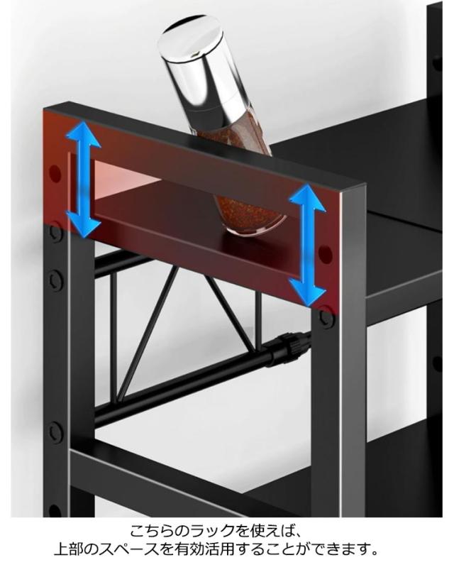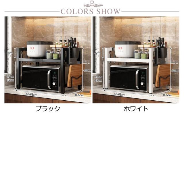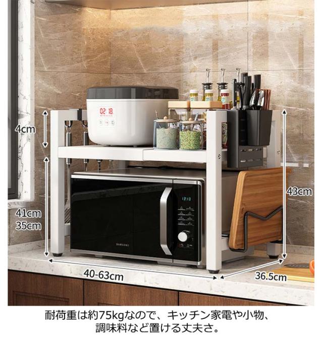 レンジ上ラック 高さ 調節 2段階調整 幅40-63cm(伸縮可能) 伸縮レンジラック レンジ上 ラック キッチンラック レンジ台 レンジ棚 1段 キッチン収納 大型レンジ対応 電子レンジ台 トースター 炊飯器 ラック レンジ置台 カウンター上 収納 卓上