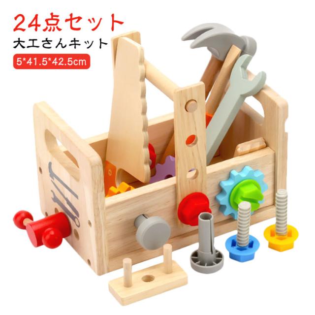 工具セット 大工 おもちゃ 大工さんままごとセット 3歳 誕生日プレゼント モンテッソーリ 木製 組み立て 知育玩具 形合わせ 指先訓練 五感 男の子 女の子 1歳 2歳 4歳 5歳 6歳 工具 木のおもちゃ 車 収納ボックス付 はじめての大工さん 積み木