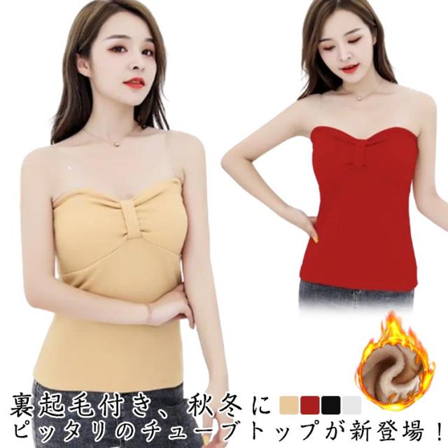 ベアトップ カップ付き 裏起毛 チューブトップ レディース ブラトップ 秋冬 インナー ずれない 胸元 シャーリング 透け防止 ダンス 大人 セクシー S M L XL 2XL