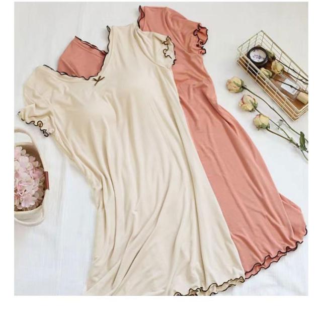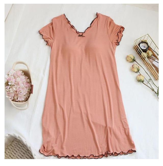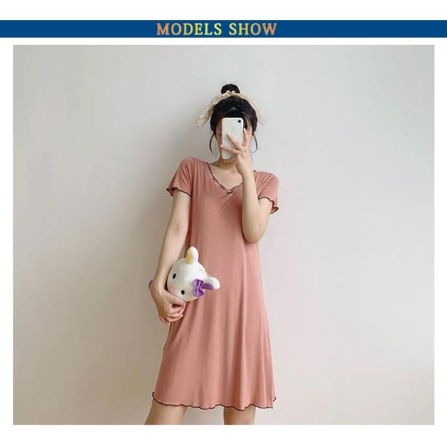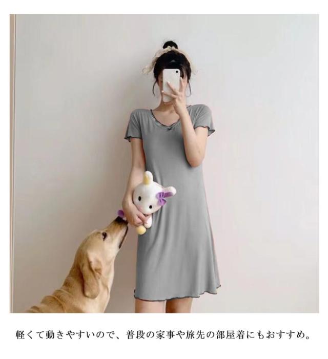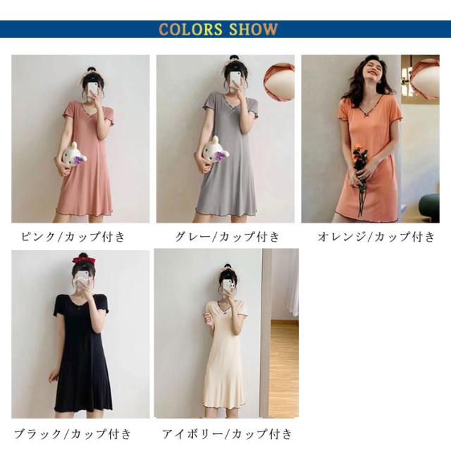ルームウェア 可愛い 夏 カップ付き 部屋着 ワンピース パジャマ 半袖 薄手 レディース 無地 大きいサイズ シンプル かわいい カップ付き カップつき カップ付 おしゃれ ルームワンピース ストレッチ ブラつき ミディアム丈 体型カバー ナイトウエア シンプル 送料無料