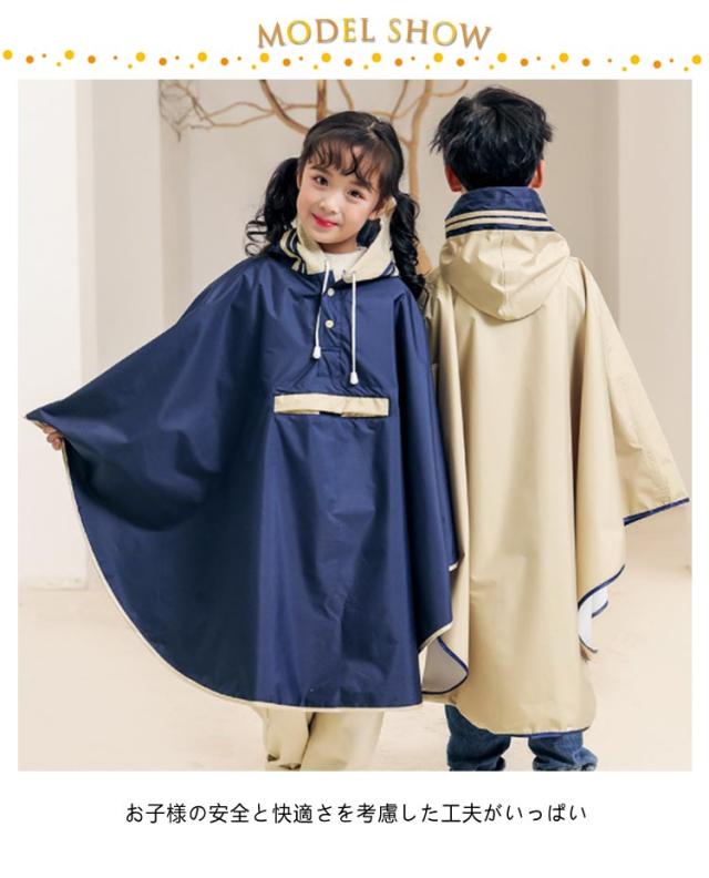 | ランドセル対応・収納バッグ付 キッズレインコート 90cm-145cm お子様の安全と快適さを考慮した工夫がいっぱい ランドセルを背負ったままで着用できます。もちろんリュックもOK♪ 収納袋付きなのでいつでもコンパクトに持ち歩けます。 首の部分は紐付きで縛ると雨風の侵入を防げる。 | |