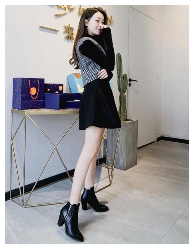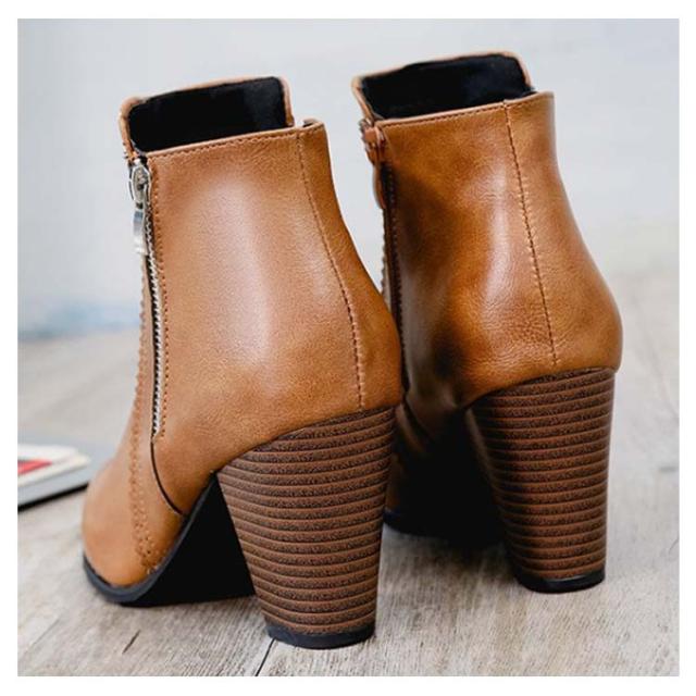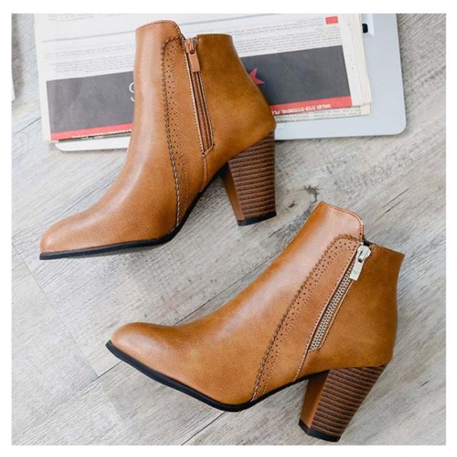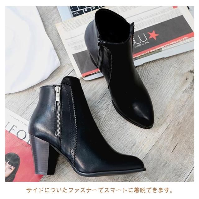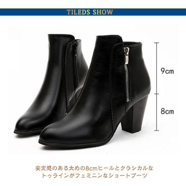 ショートブーツ アンクルブーツ ハイヒール 太め 安定 レディース ブーティ 太ヒール サイドファスナー ヒール高さ8cm ポインテッドトゥ 美脚 通勤 通学 カジュアル 大人 女性 歩きやすい おしゃれ きれいめ 合皮 無地 全2色 大きいサイズ ギフト 送料無料