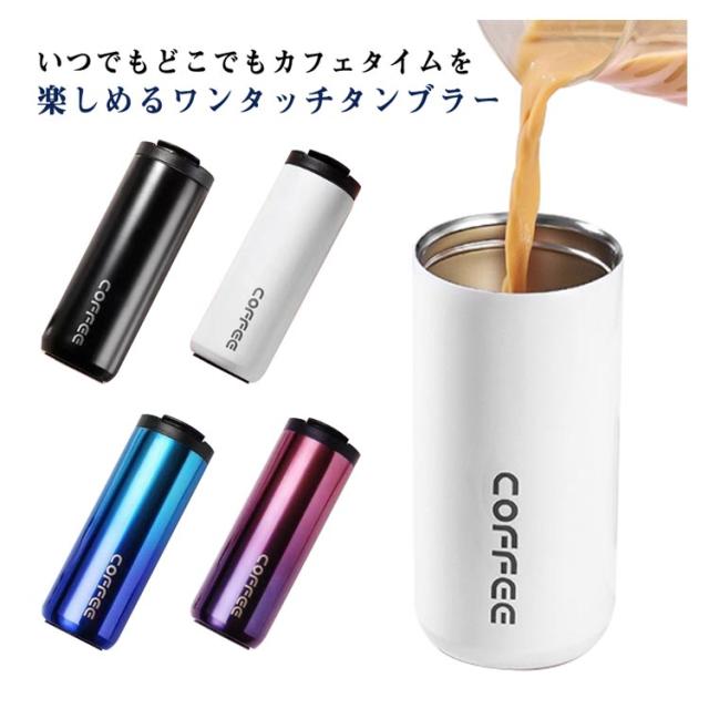 | いつでもどこでもカフェタイムを楽しめるワンタッチタンブラー。 淹れたてのコーヒーやお気に入りのフレーバーティーなどをオフィスやお出かけ先に持って行けます。 真空断熱二重構造なので、冷たいものも温かいものも飲み頃をキープ!100℃飲み物で4時間後も60℃の温かさをキープ。 ふたにはパッキンが付いていて、密閉できるのでカバンの中に入れて持ち運べるのが嬉しいです。 飲み口はカフェ風のデザインで、ふたをしたまま飲むことができます。口当たりもよく、飲みやすい形状です。 ご自宅でのコーヒータイムはもちろん、デスクワークでも使いやすいスタイリッシュなタンブラー。 | |
