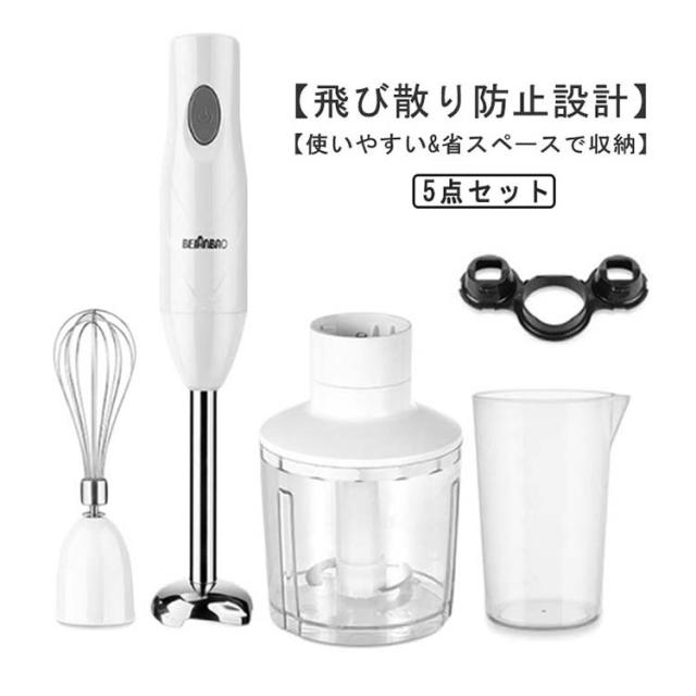 ハンドブレンダー 4点セット ブレンダー ミキサー ハンドブレンダー フードプロセッサー 離乳食 介護食 軽量 スリム コンパクト ボトル ミニ 多機能 時短 スムージー 2段階スピード切替 つぶす 混ぜる 刻む 泡立てる 砕く