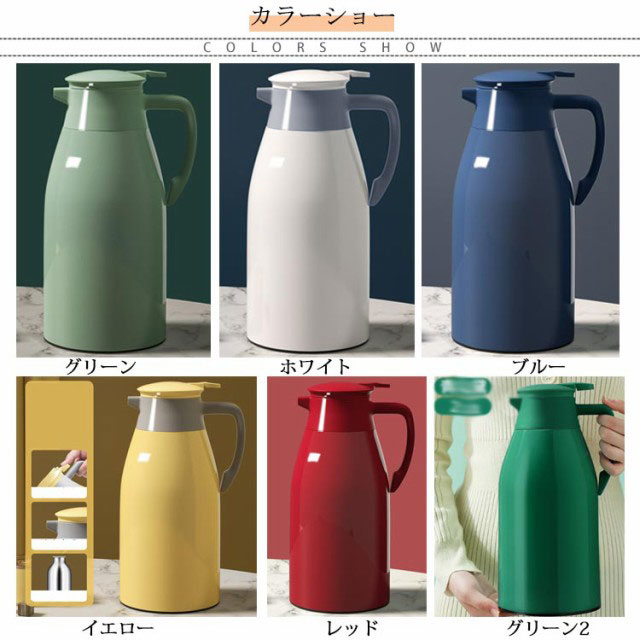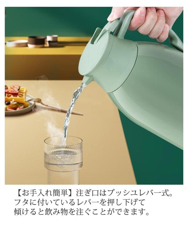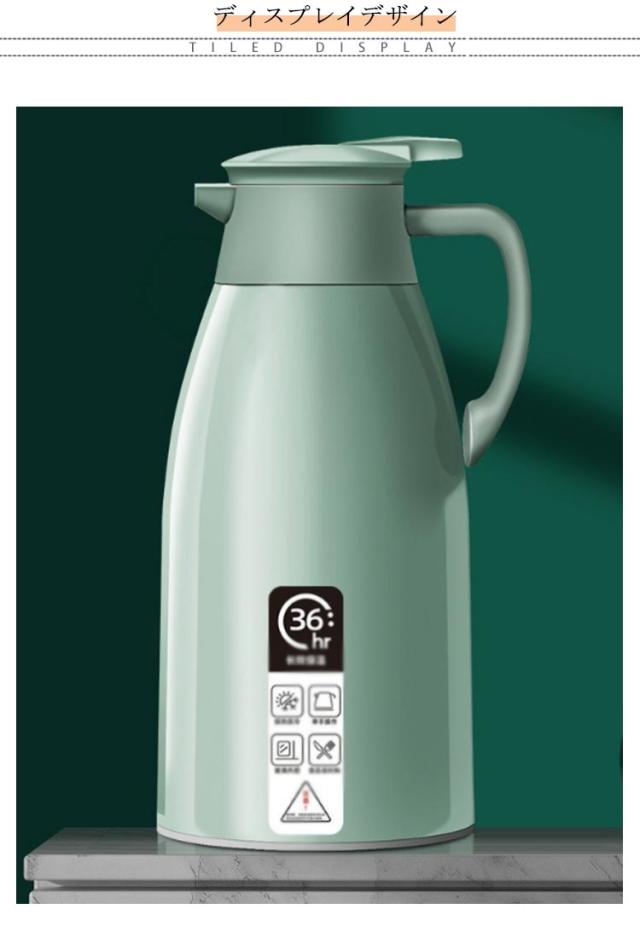 | 【高品質ガラス】内層高品質ガラス製で、耐久性に優れて、長持ちの保温瓶です。人間工学に基づいたおしゃれなデザインで使いやすいです。 【大容量】一回のお湯を沸かすと家族全員の飲み水の需要を満たすことができます。頻繁にお湯を沸かす必要はなく、時間を節約できます、シンプルでユニークなデザインで、キッチンやデスクトップの装飾としても使用できます。 【お手入れ簡単】注ぎ口はプッシユレバ一式。フタに付いているレバ一を押し下げて傾けると飲み物を注ぐことができます。 【適用範囲】家庭用、喫茶店、ドリンクショップに最適です(酸性飲み物の保存に適用しない)。お茶、コーヒー、水、ミルク、ジュースなどの保存用の卓上ポットとして大活躍です。 | |