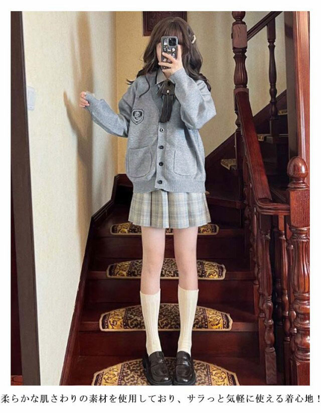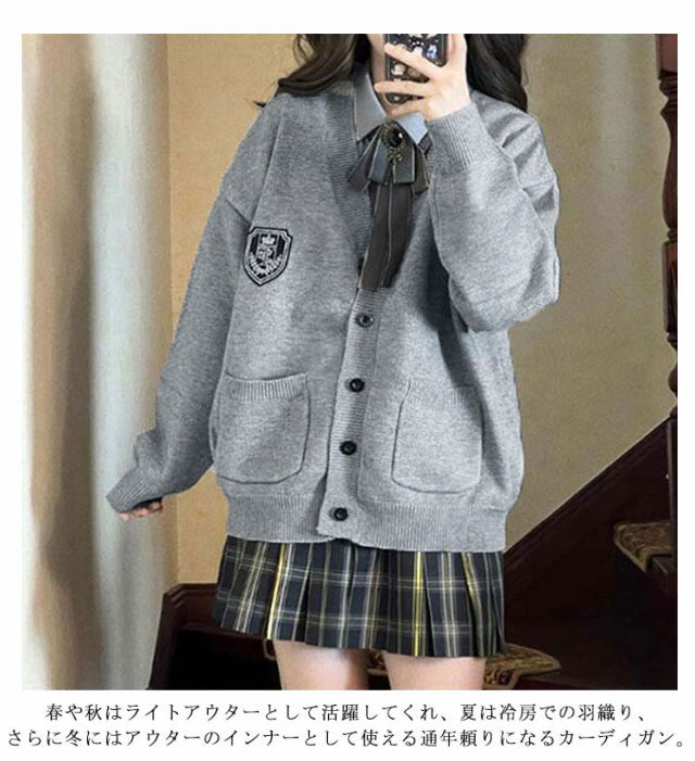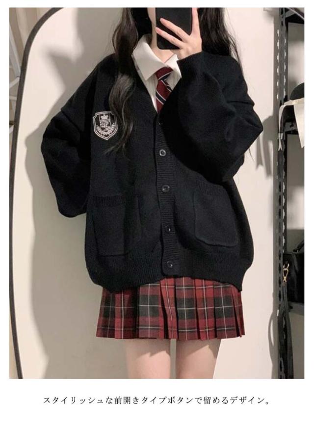 スクールカーディガン 女子 制服 カーディガン ニット 無地 ニットカーデ 前開き 学生服 Vネック ゆったり 大きいサイズ スクールニット 通学 高校生 中学生 春 秋 冬 ベージュ 黒 グレー