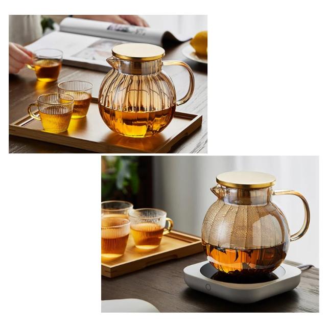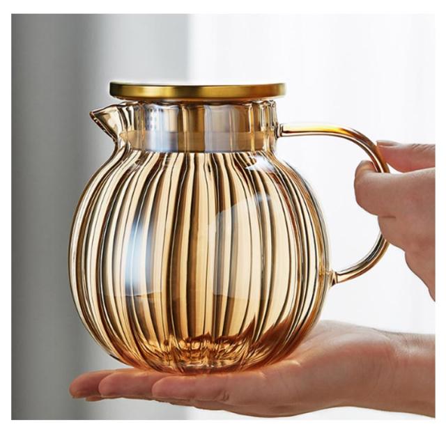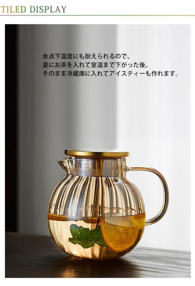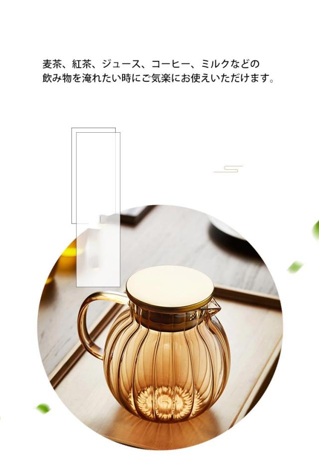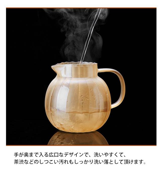 ティーポット カボチャ 耐熱ガラス 1300ml 急須 ティーフォーツー 蓋付き ガラスポット 直火対応 紅茶 フルーツティー リーフティー 花茶 工芸茶 ハーフティー 来客用
