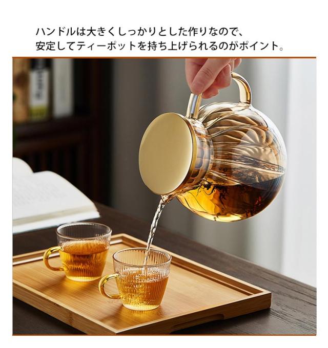 | ジャンピングが楽しく透明度の高いティーポット♪ 耐熱ガラスで作られて、直火にも対応可能!電気陶炉もおすすめです。 氷点下温度にも耐えられるので、夏にお茶を入れて室温まで下がった後、そのまま冷蔵庫に入れてアイスティーも作れます。 ハンドルは大きくしっかりとした作りなので、安定してティーポットを持ち上げられるのがポイント。 手が奥まで入る広口なデザインで、洗いやすくて、茶渋などのしつこい汚れもしっかり洗い落として頂けます。 麦茶、紅茶、ジュース、コーヒー、ミルクなどの飲み物を淹れたい時にご気楽にお使えいただけます。 | |