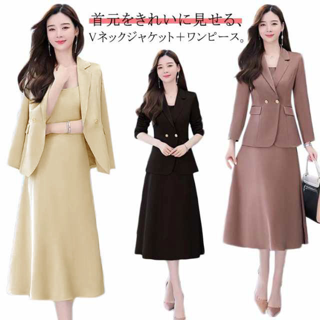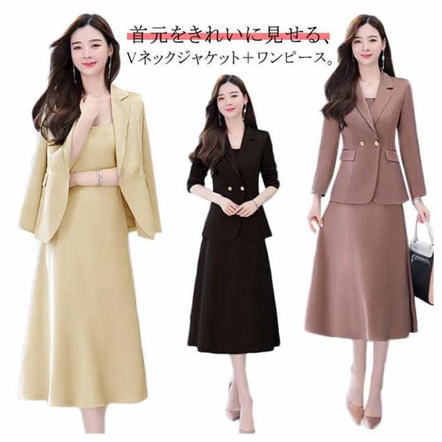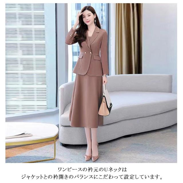 スーツ レディース セレモニースーツ 入学式 ママスーツ 卒業式 ノーカラー2点セットスーツ(ジャケット&ワンピース) フォーマル オフィス ビジネス 卒園式 入園式 結婚式 セットアップ 通勤 20代 母 ママ 30代 40代 春秋 夏